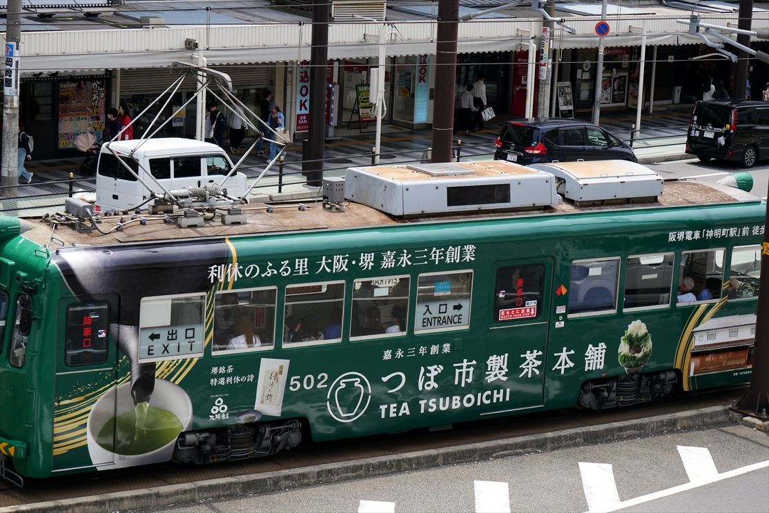 2025年05月26日 つぼ市製茶本舗(阪堺電車) カテゴリ:阪堺電車 by wrpgu 最近、新しいラッピングが増えている阪堺電車、502はお茶の広告に 左右同じデザイン 阪堺電車は昔は塗装広告ばかりでしたが、最近はラッピングも使われるようになって、写真入りデザインも増えましたね おまけ:帝塚山音楽祭 (2025/5)