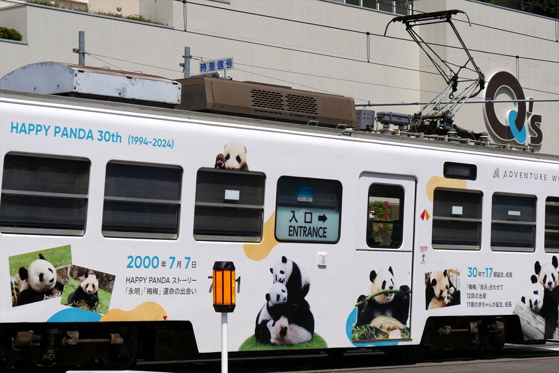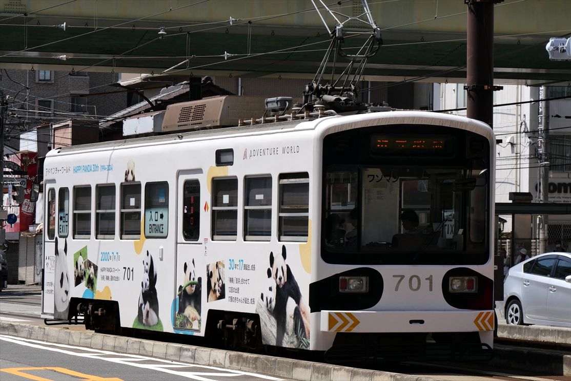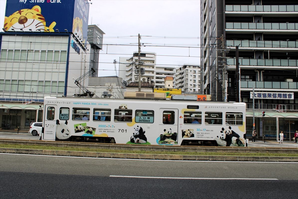 2025年05月08日 アドベンチャーワールド(阪堺電車) カテゴリ:阪堺電車 by wrpgu 阪堺で長いこと広告を出している、南紀白浜アドベンチャーワールドのラッピングデザインが新しくなりました なのに・・・このデザイン登場後ほどなくして、パンダが中国に返還されるというニュースが流れました・・・ 白浜といえば、パンダ。今後どうなるのだろう (2025/5)