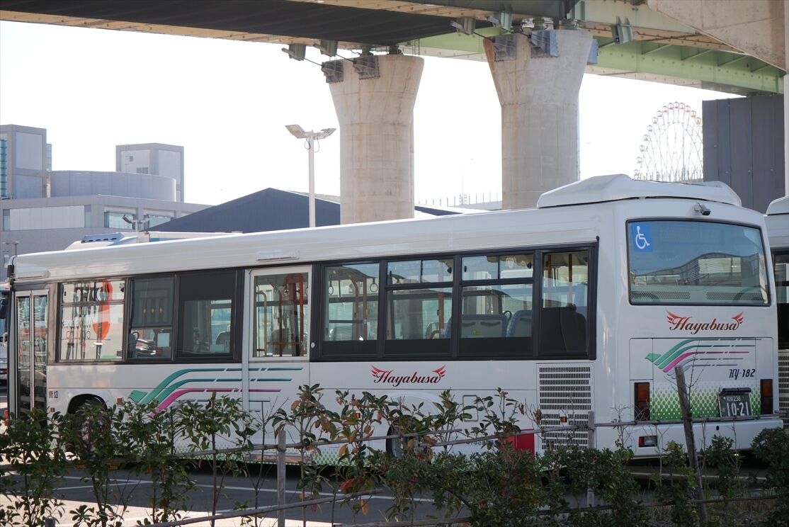 2025年12月21日 はやぶさ国際観光バスHR カテゴリ:その他(バス記事) by wrpgu 大阪関西万博の時、船着き場のシャトルバスなどで活躍した、はやぶさ観光の中型車(元近鉄バスだそうで)、それは見ることが出来なかったのですが、りんくうタウンそばの車庫で見かけました 見たいと思っていたので、よかった 電気バスは今どこにいるのかな?↓ (2025/12ほか)