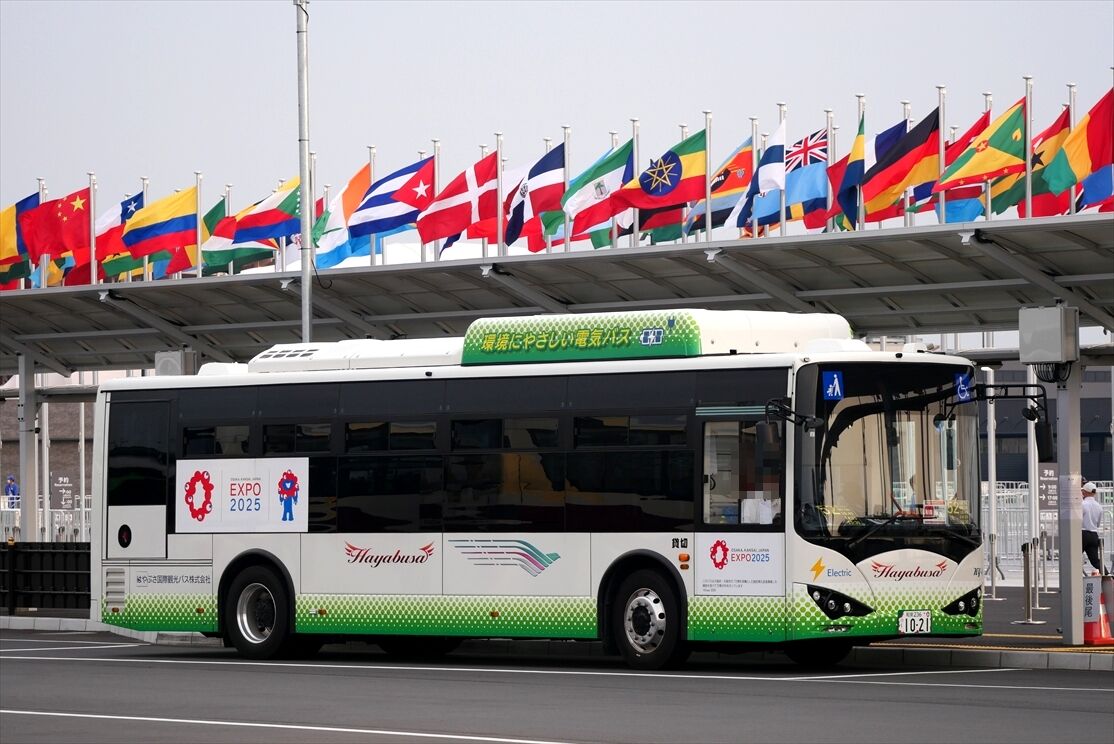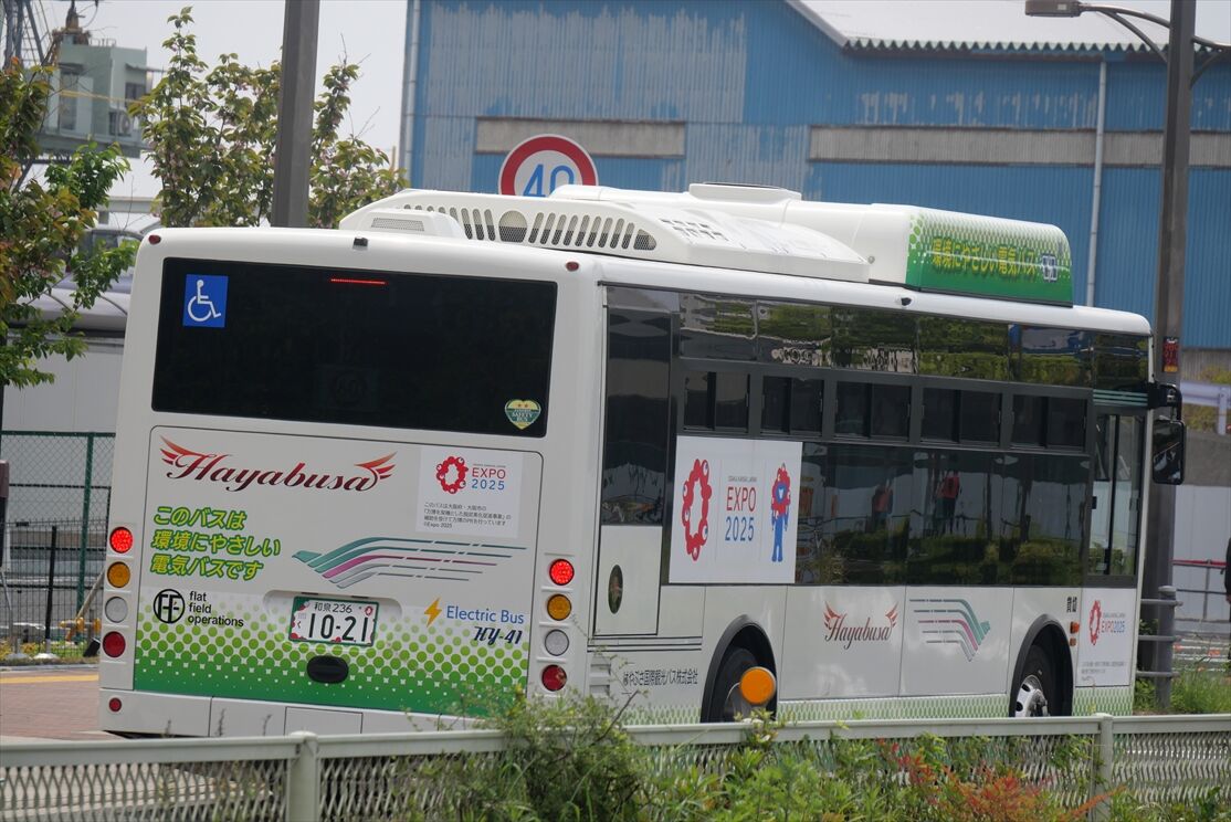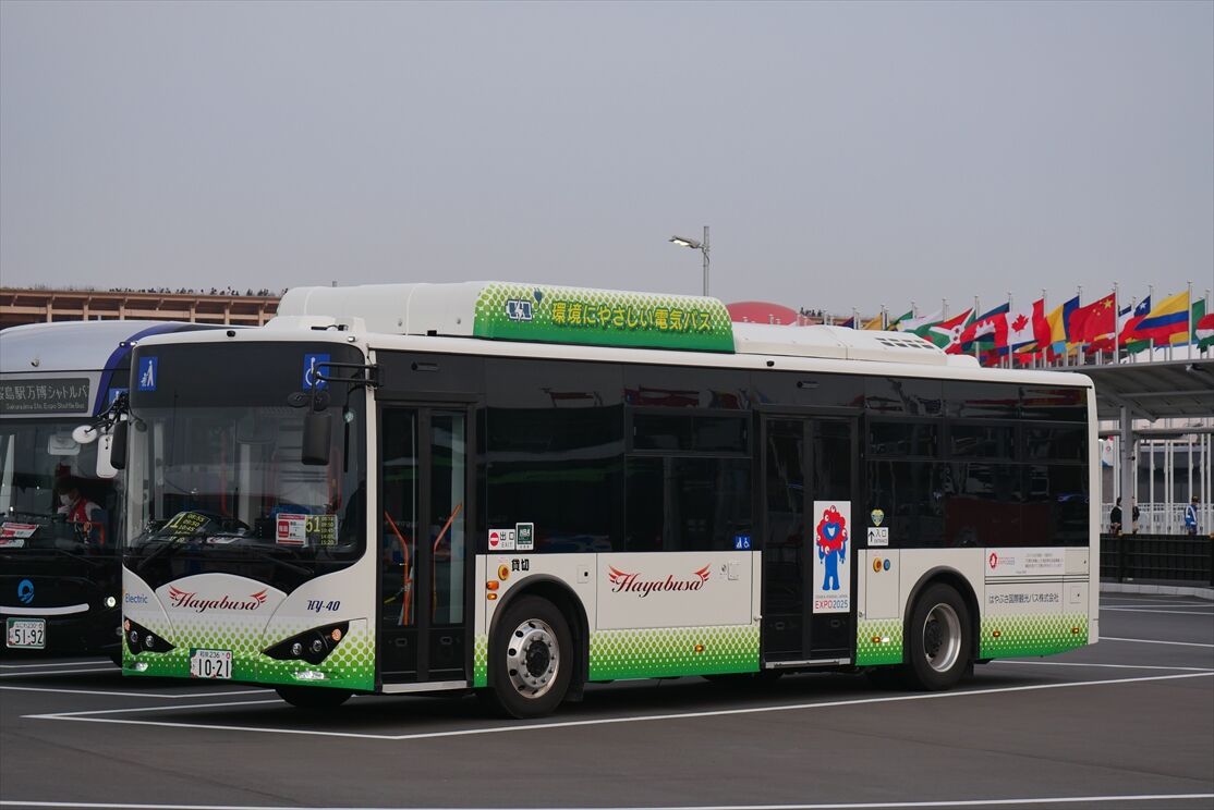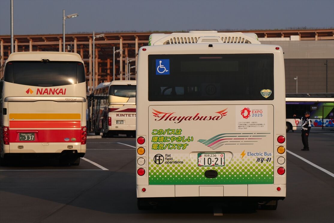2025年10月06日 EVバス(はやぶさ国際観光バス) カテゴリ:大阪関西万博・ミャクミャク関連◇路線バス色々(関西) by wrpgu はやぶさの万博・EVバス、そういえば載せてなかったな、ということで 桜島~万博シャトルバスとして活躍 それ以外のシャトルバスでは、観光バスも活躍 (2025/5ほか)