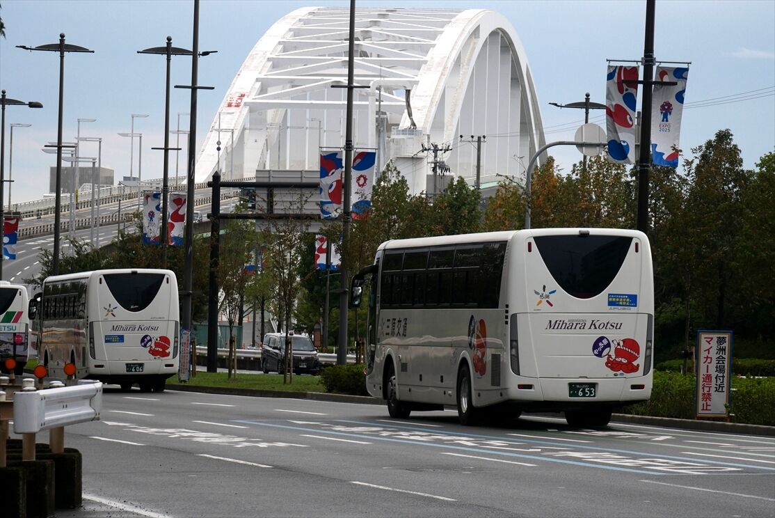 2025年12月25日 福山200か653・606 やっさ祭(三原交通) カテゴリ:◇高速・観光バス等 by wrpgu 万博会場付近で見かけた、福山・三原交通の観光バス 「やっさ祭」のマークがデザインされていました。 2台連続でいました おまけ:福山ナンバーつながりで、本四バス開発