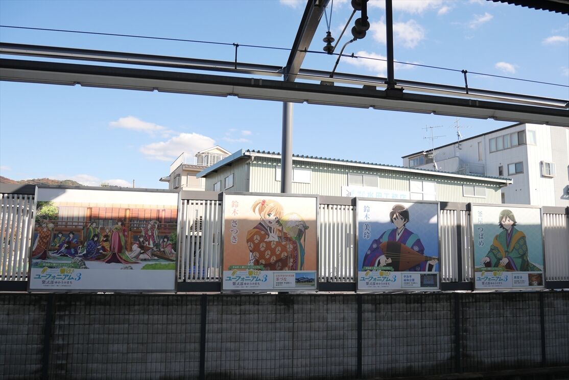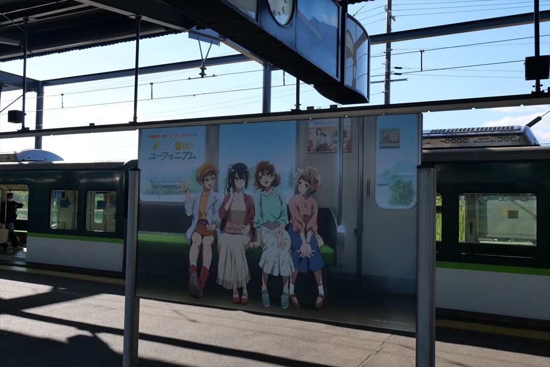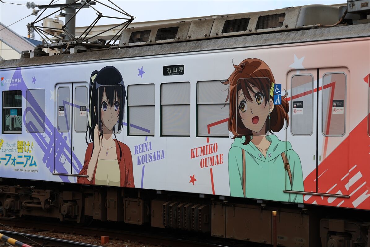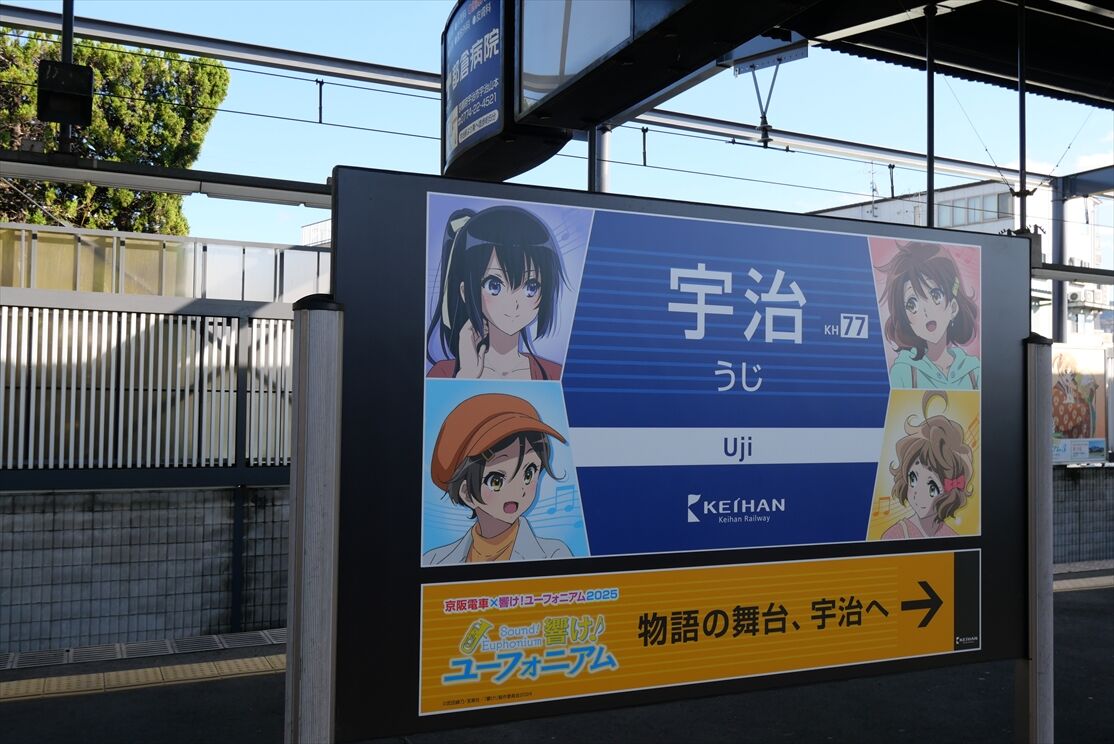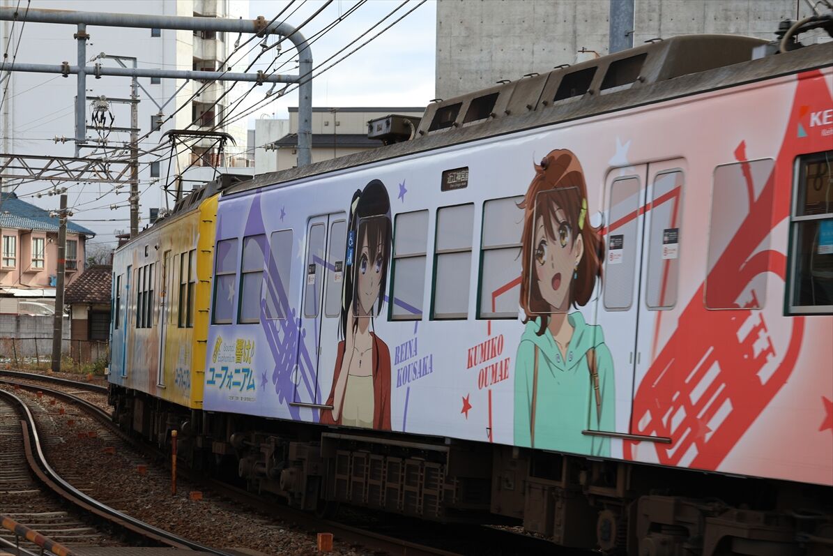 2025年12月01日 響け!ユーフォニアム(京阪電車) カテゴリ:京阪電車 by wrpgu 久々に京阪宇治線に乗ったら、宇治駅が響けユーフォニアムの装飾だらけ 乗って来た電車に、ヘッドマークもありました 大津線でも新しいラッピングがあるようで おまけ:宇治市をぶらぶら歩いて、そこでも色々ユーフォニアムありました (2025/11)
