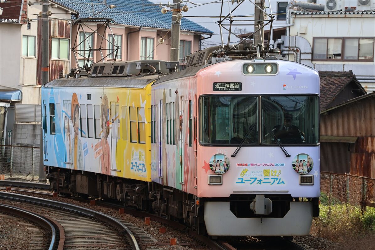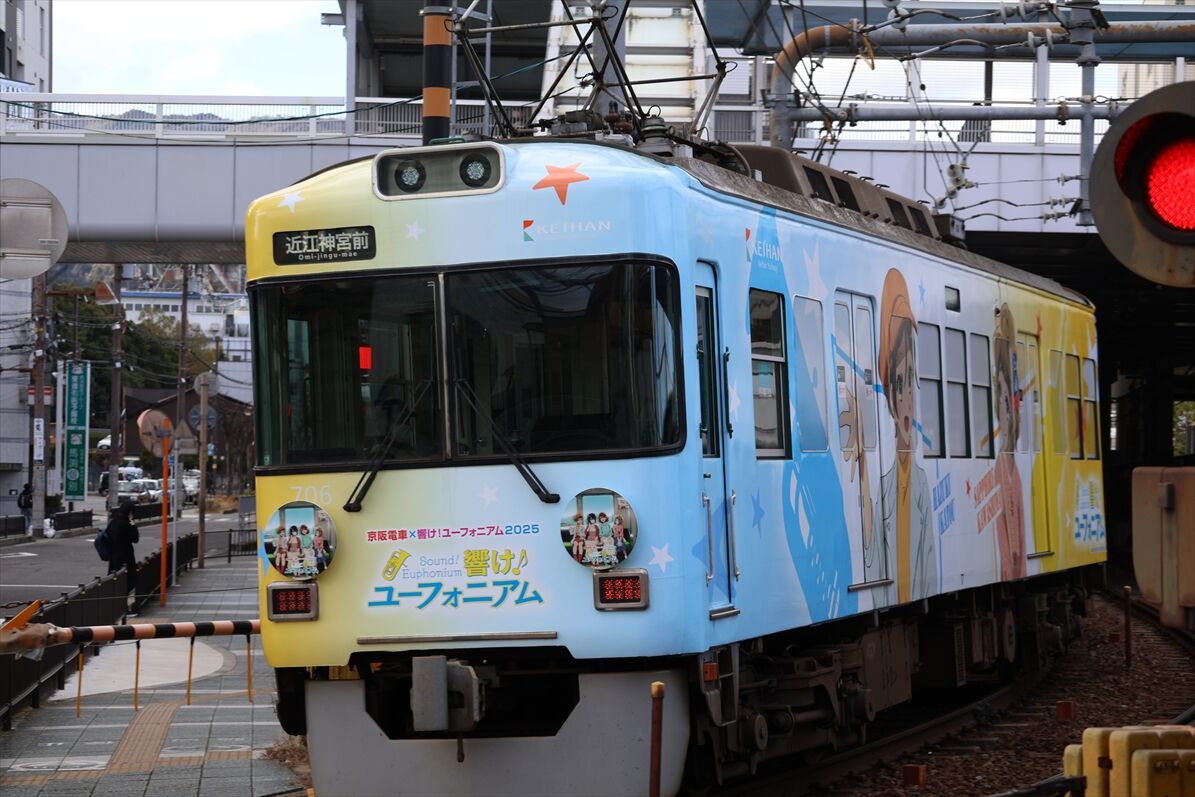 2026年01月12日 響けユーフォニアム2025(京阪大津線) カテゴリ:京阪電車 by wrpgu 京阪大津線に昨年秋に登場した、恒例の、響けユーフォニアムのフルラッピング電車 今回は左右ほぼ同じデザイン (2026/1)
