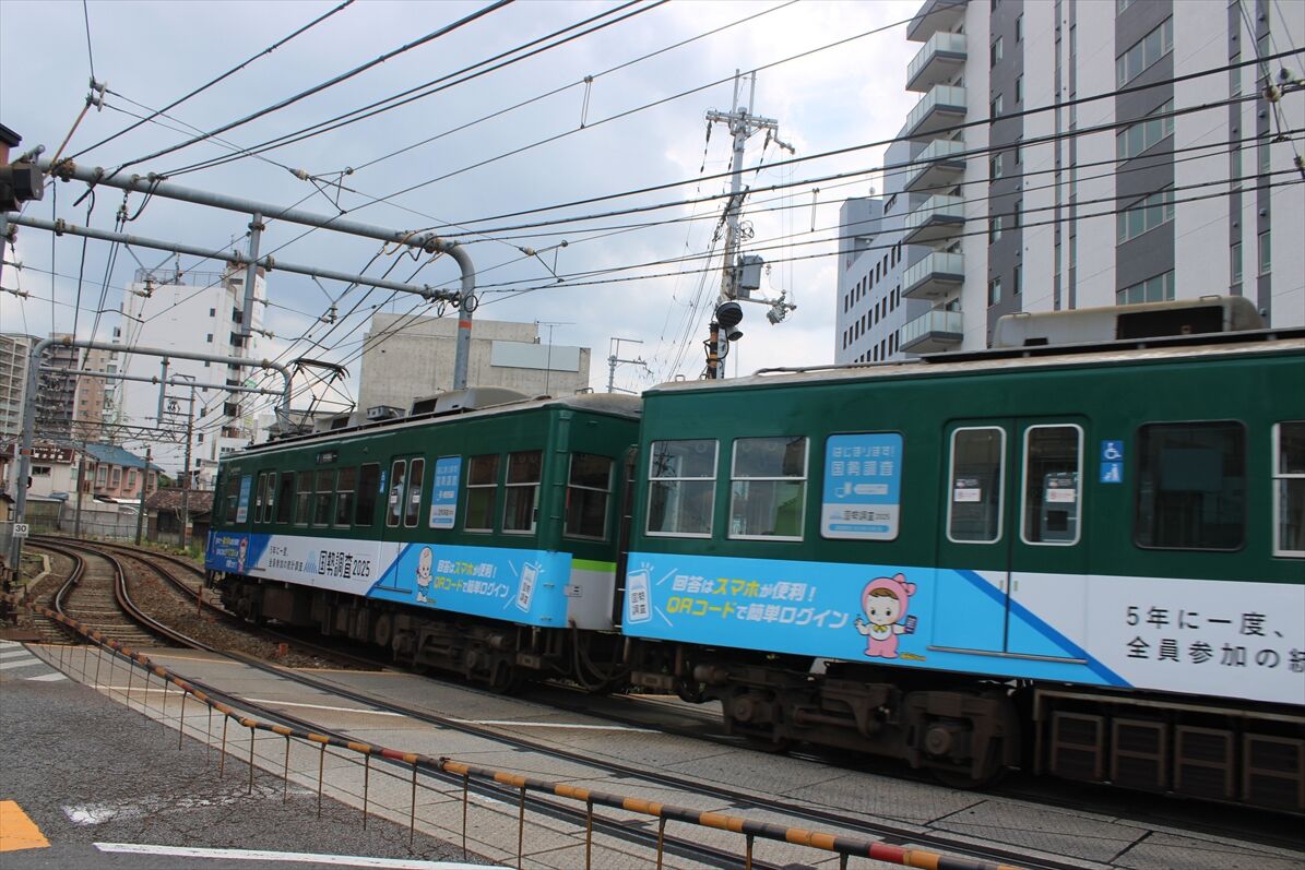 2025年09月11日 国勢調査(京阪大津線) カテゴリ:京阪電車 by wrpgu 京阪大津線で、国勢調査のラッピング編成に遭遇 期間限定のラッピング おまけ:石山の踏切にこんな表示板が (2025/9)