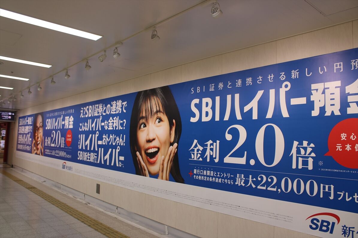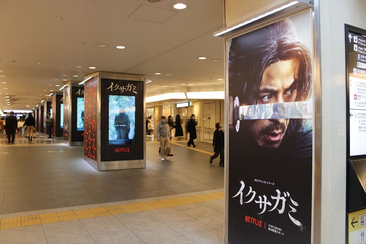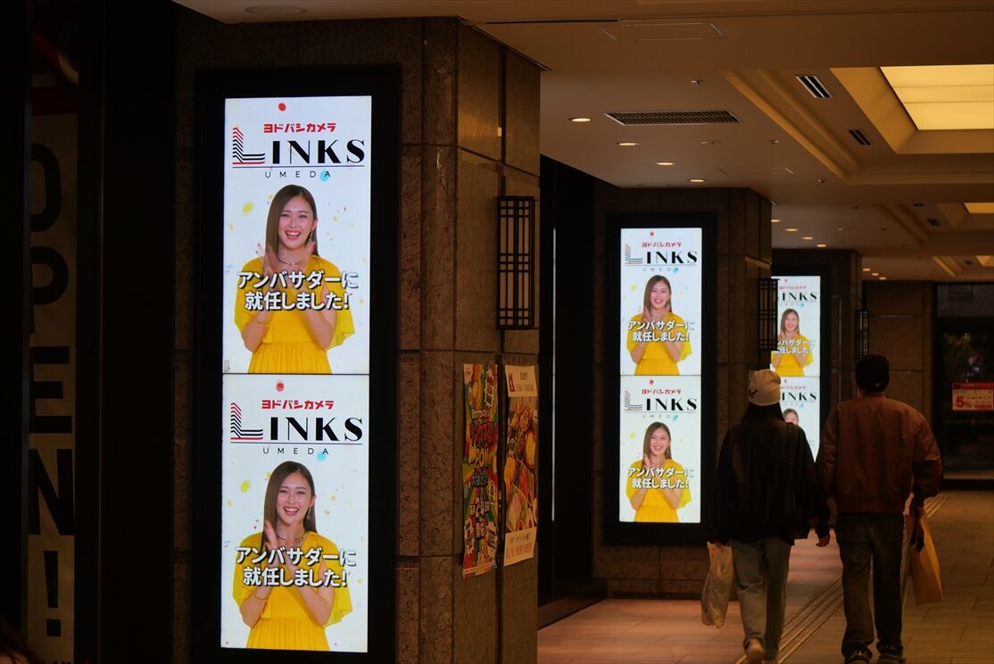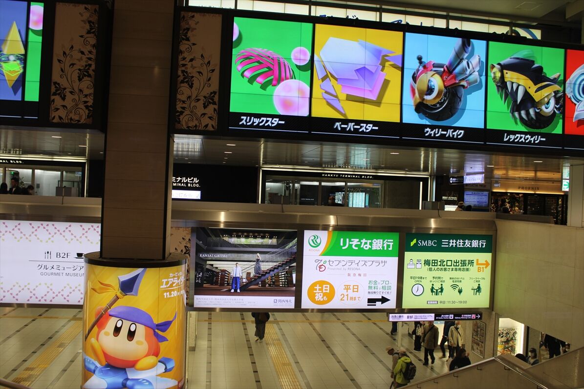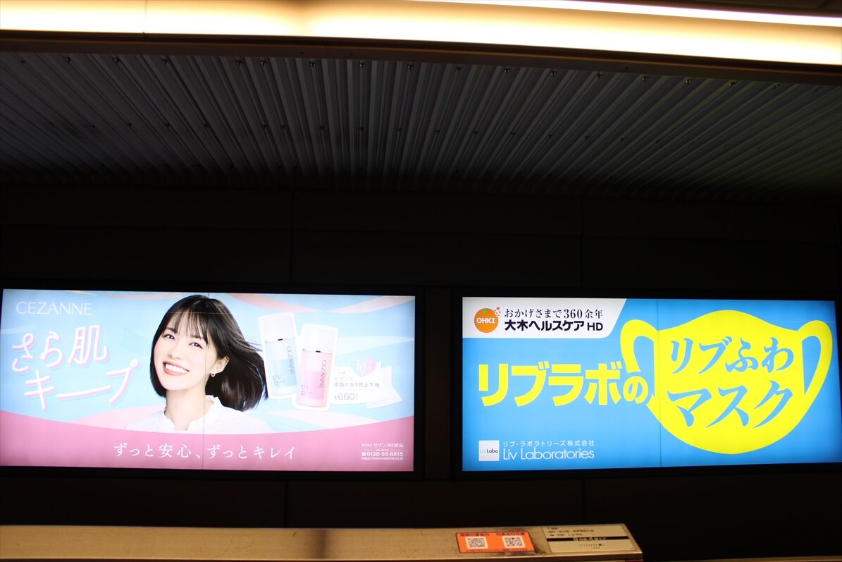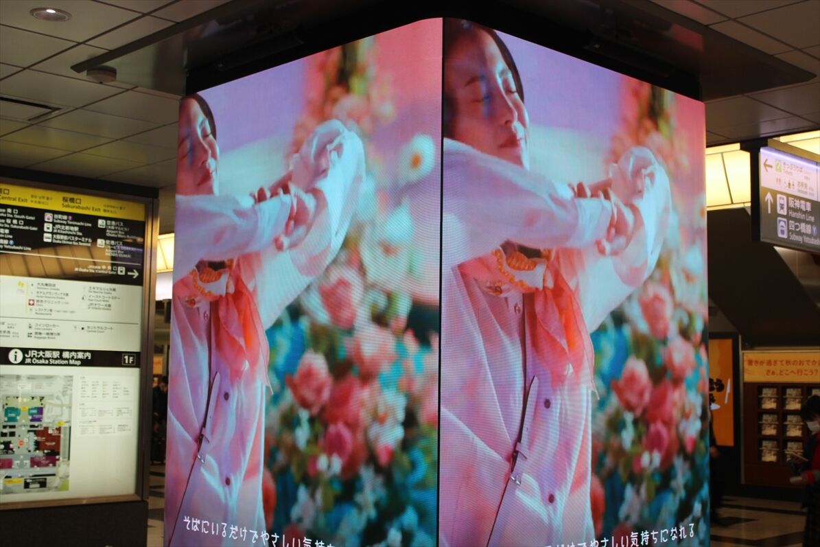 大阪駅桜橋側の地下通路で、カーセンサー・GLAYのコラボ広告が音声付で1/5~掲出