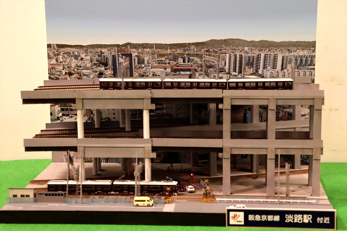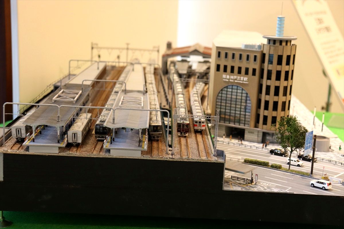 また、昨年も展示された、阪急三宮、石橋阪大前、淡路などが今回はレールでつながって、そこを模型電車が走るというスケールに拡大