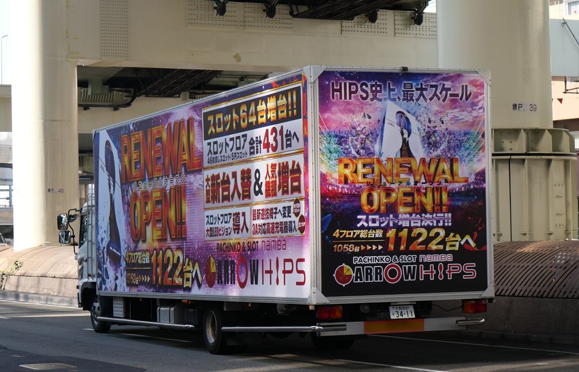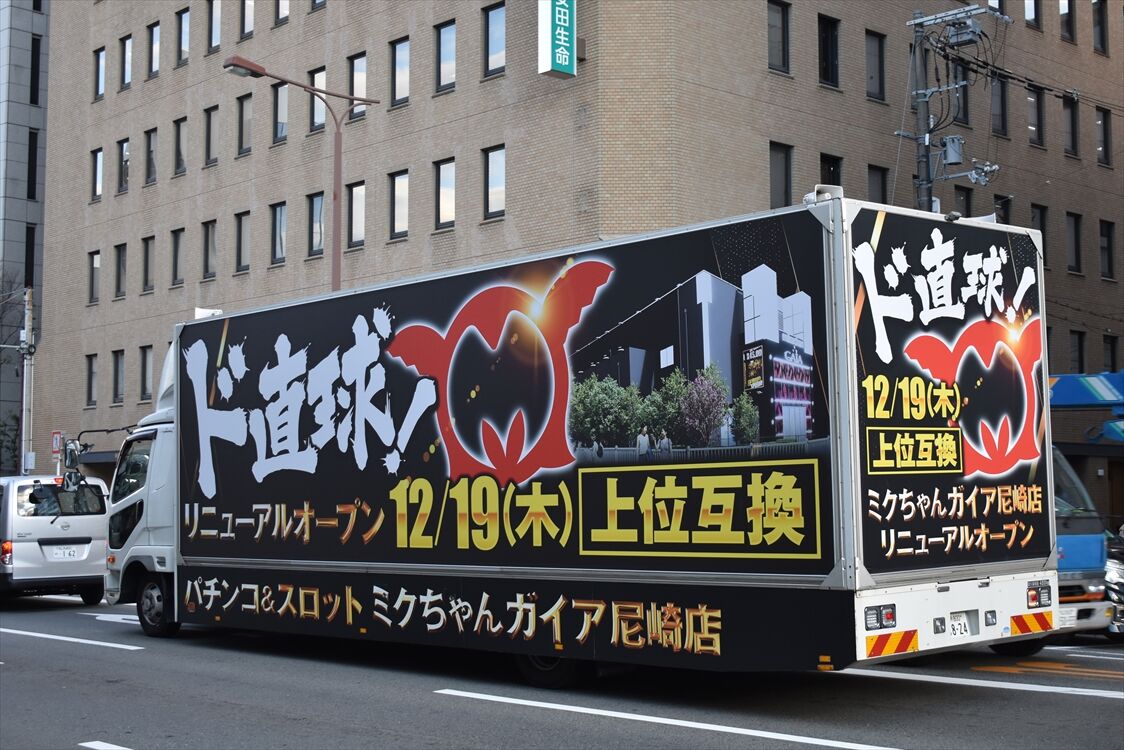 先日、マルハンのリニューアルオープン宣伝ビジョントラックを載せましたが、もう1台走っていました