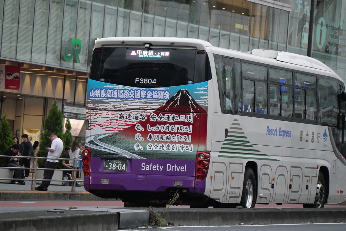 2025年08月04日 ◆山梨県高速道路交通安全協議会(富士急&山梨交通) カテゴリ:甲信越 ラッピング車 by wrpgu 高速道路安全運転のリアラッピングバスを、富士急行と山梨交通で2台続けて見かけました 同じデザイン (2025/7)