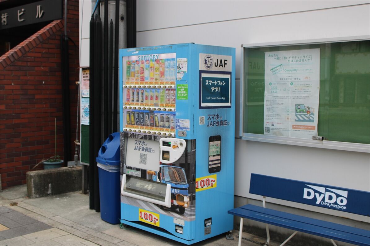大石駅そばの、JAF前にある、JAFのラッピング自販機