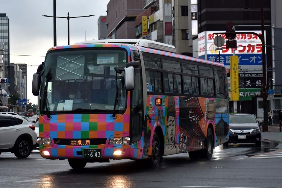 2022年03月10日 おんせん県おおいた(亀の井バス) カテゴリ:鹿児島・大分県 ラッピング車 by wrpgu 博多で見かけた、大分県PRのラッピングバス 左右でデザイン違いですが、左面はほぼ撮れず・・・ おまけ:大分ではないですが、宮崎のご当地ナンバーをつけたJRバス