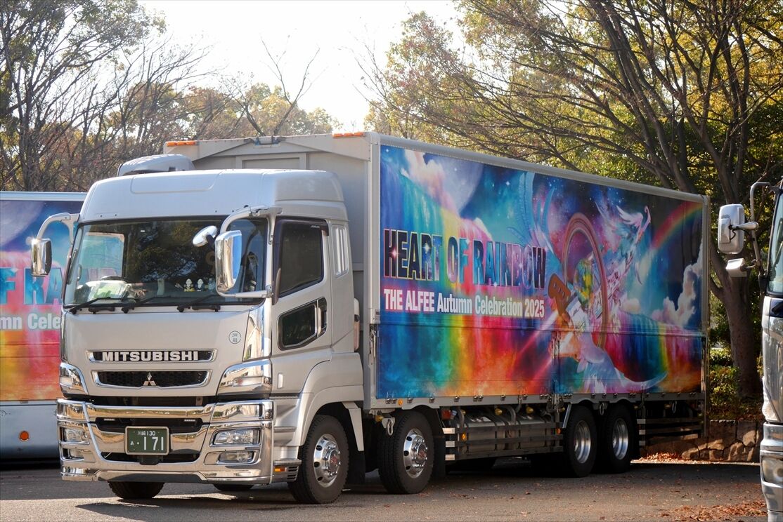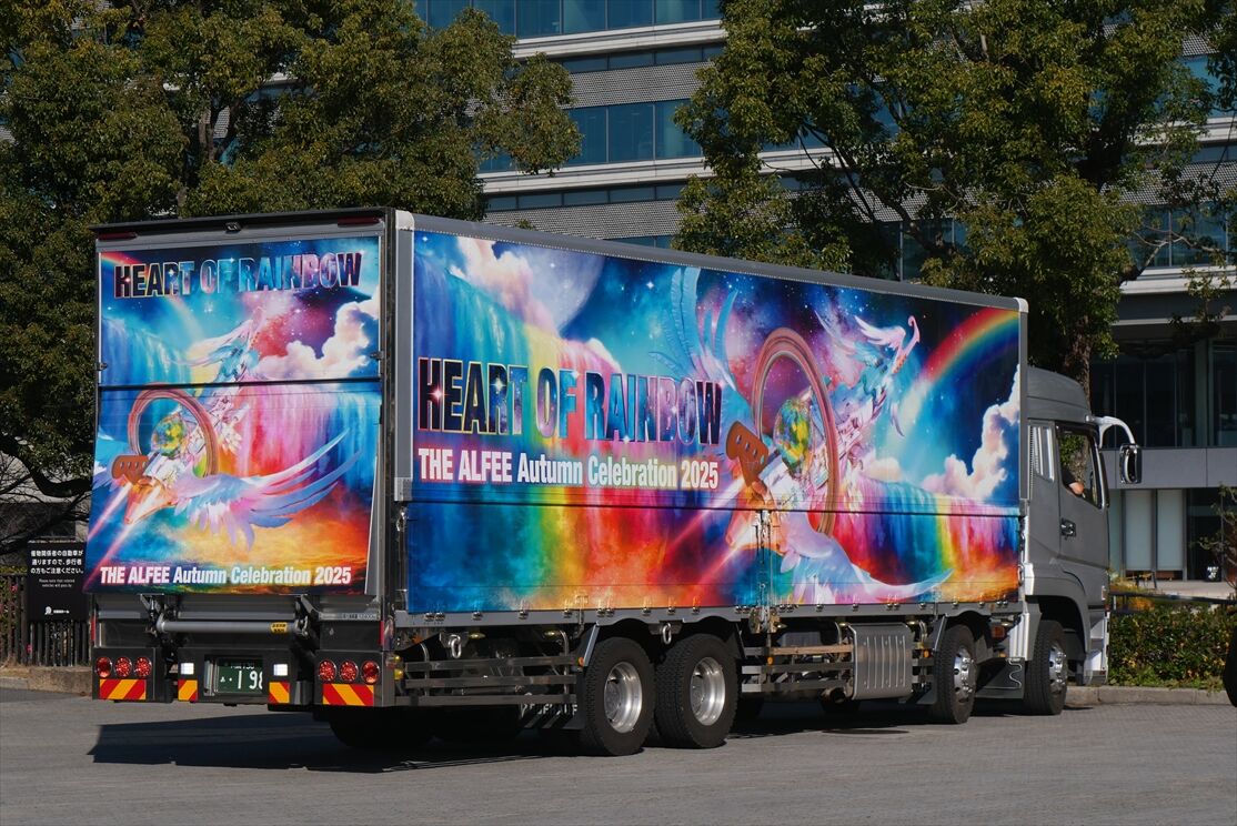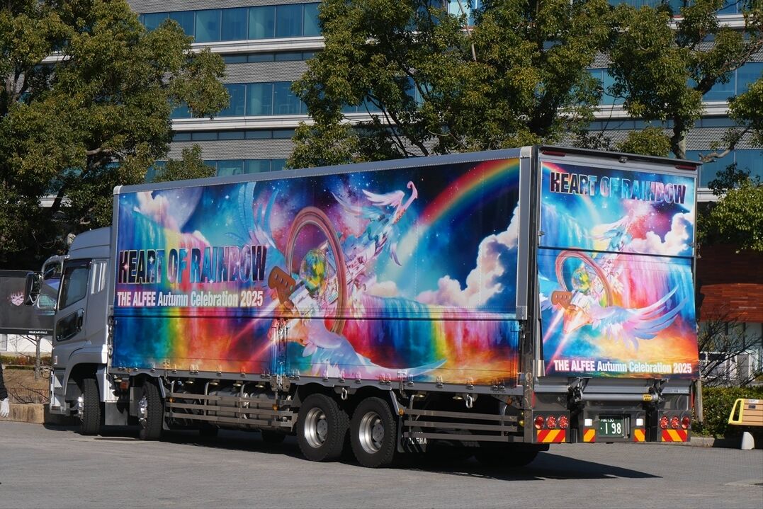 2025年12月29日 THE ALFEE(ツアートラック)2025 カテゴリ:◆ツアトラ:男性アーティスト by wrpgu 大阪城ホールにて、今年もアルフィーのライブが行われ、ラッピングツアトラ見てきました ちょうど1台が搬入作業中でした 残り4台、いずれも同じデザインで展示 (2025/12/29)