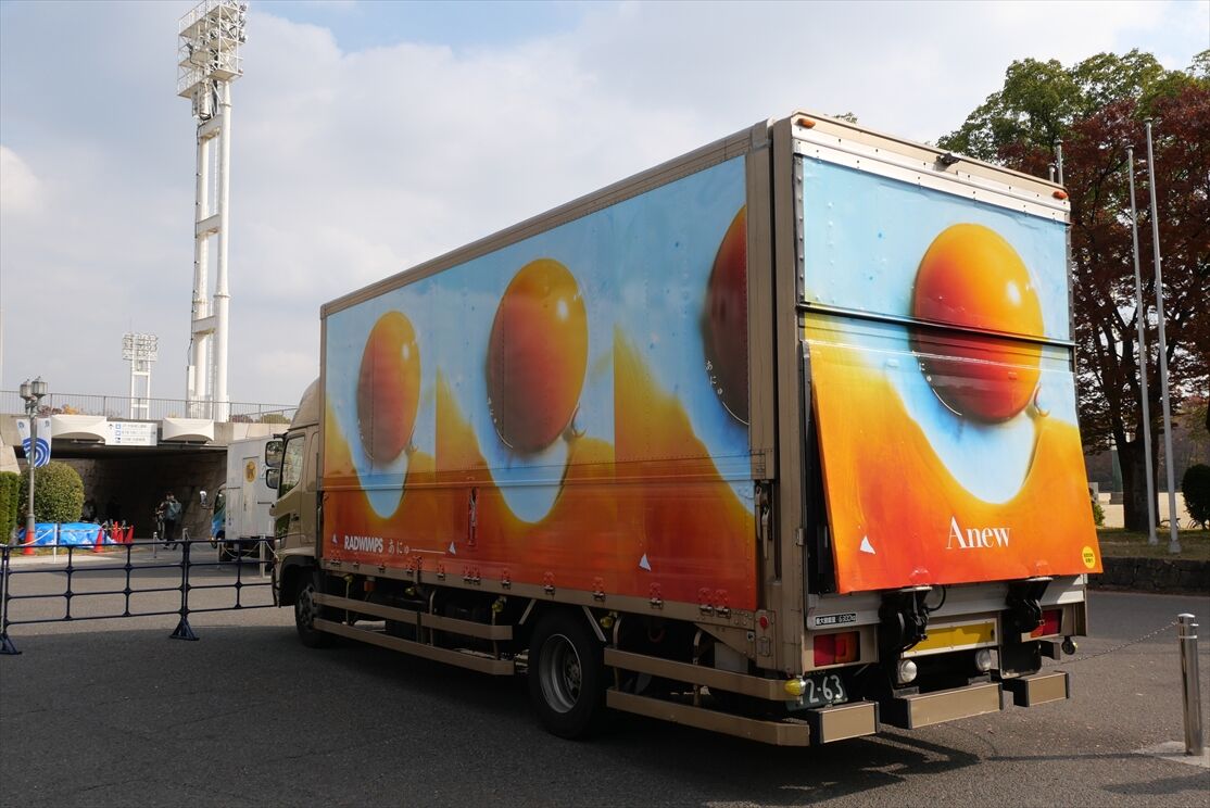 2025年12月03日 RADWIMPS(ツアートラック)2025 カテゴリ:◆ツアトラ:男性アーティスト by wrpgu 大阪城ホールでライブのRADWIMPS、ラッピングのツアートラック3台が展示 フォトスポットも隣にありましたが、撮ったつもりが、単体では撮ってなかった・・・ (2025/12)