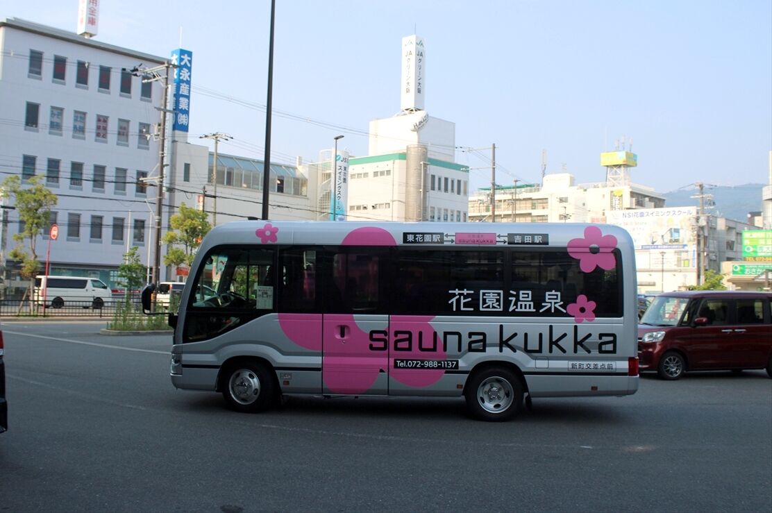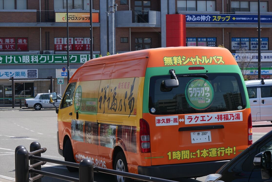 鳳で見かけた、浜寺にある祥福乃湯&ラクエンのシャトルバス