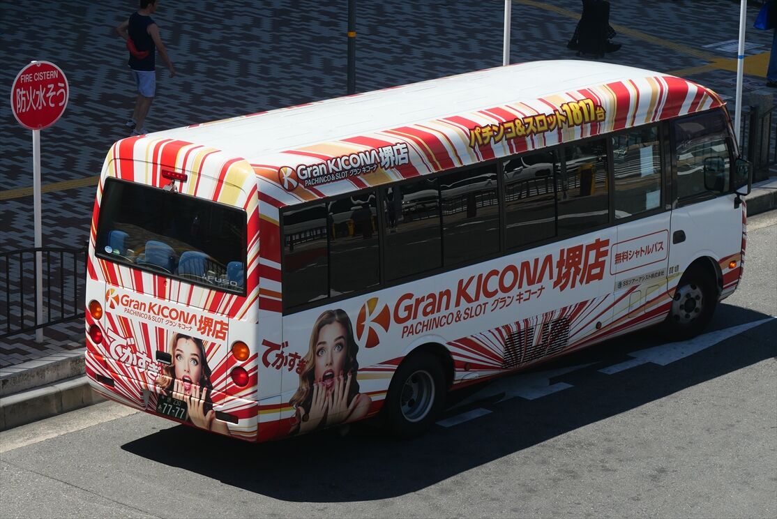 以前は堺東でもラッピングのマイクロバス見かけていましたが、そういえば最近見ないような?(白い車両で見たかな?)