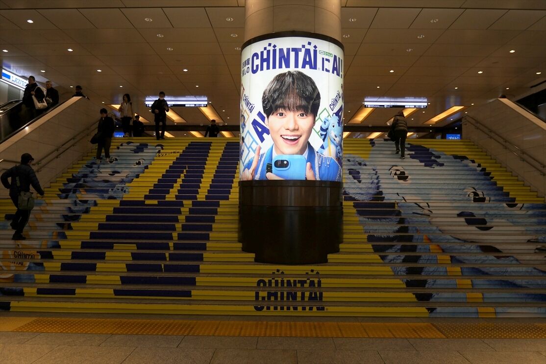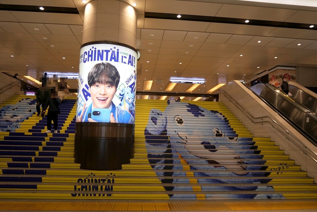 2026年02月07日 CHINTAI AI(階段ラッピングほか) カテゴリ:■建物・施設へのラッピング等 by wrpgu 2/2~阪急梅田ビッグマン広場の階段に、CHINTAIのラッピング装飾が実施 昨年の夏にもラッピングされていました また、御堂筋線なんば駅では、大きなポスターが掲出 いずれも2/8まで (26/2)