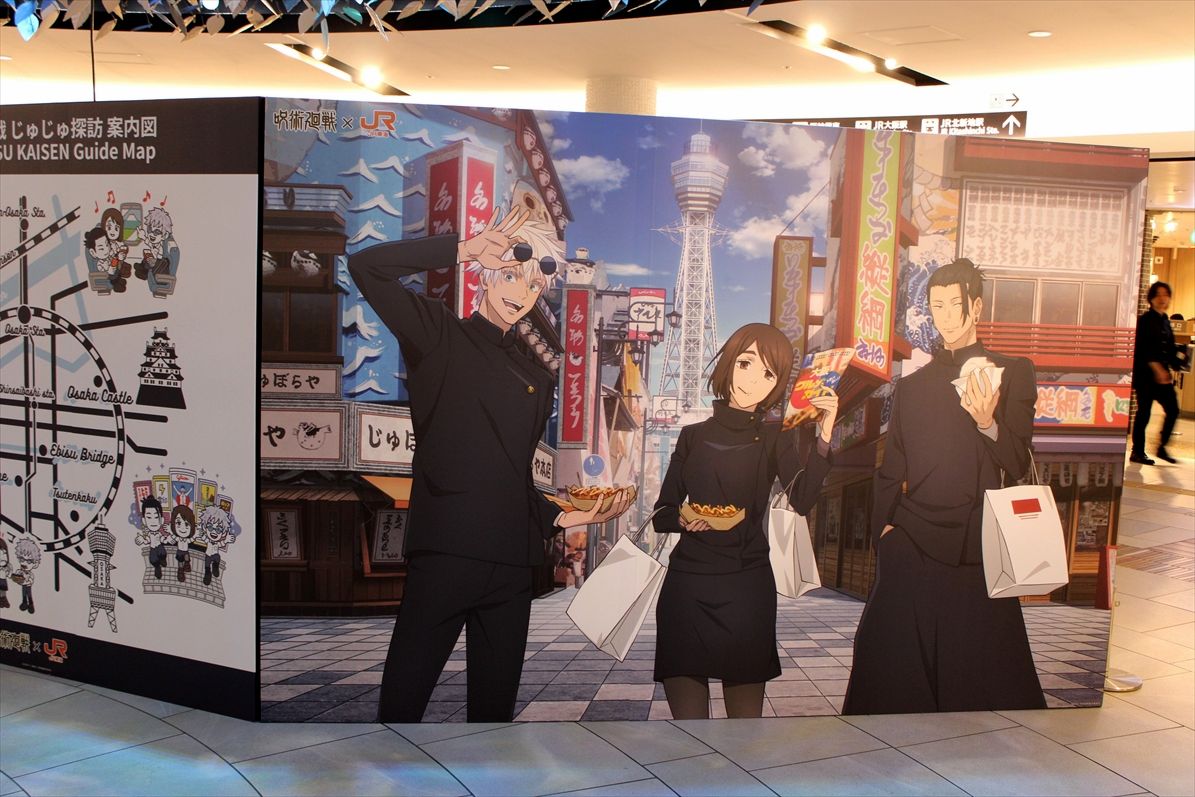ホワイティうめだで、JR東海×呪術廻戦の企画の一環で、フォトパネルがいくつか設置されています
