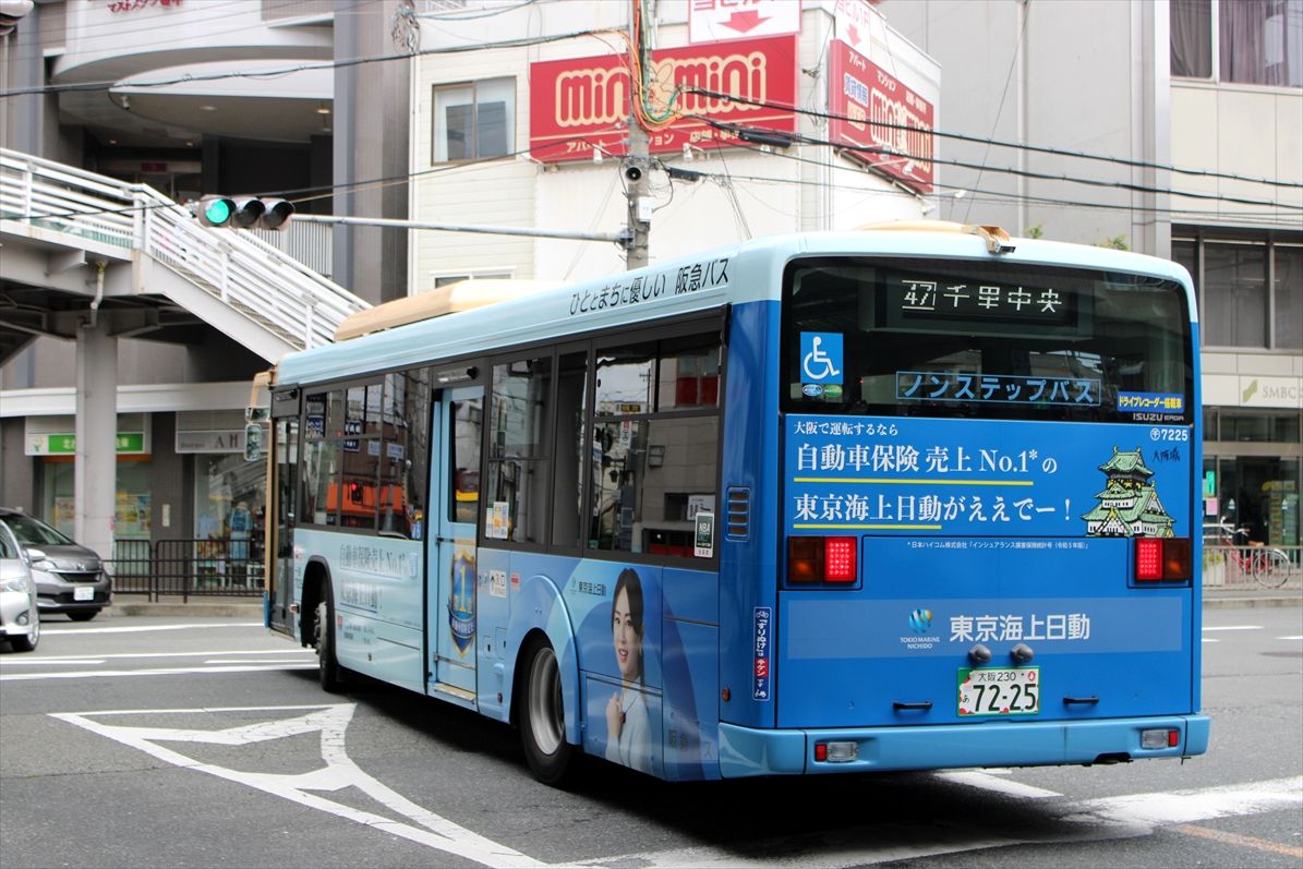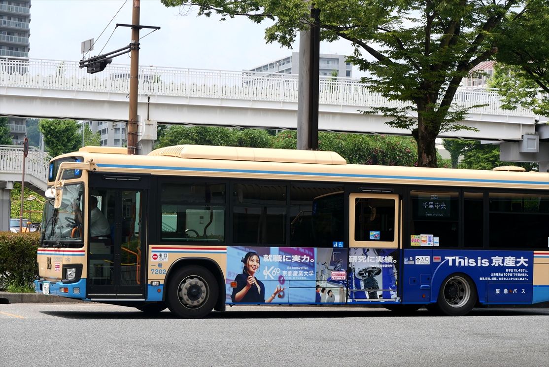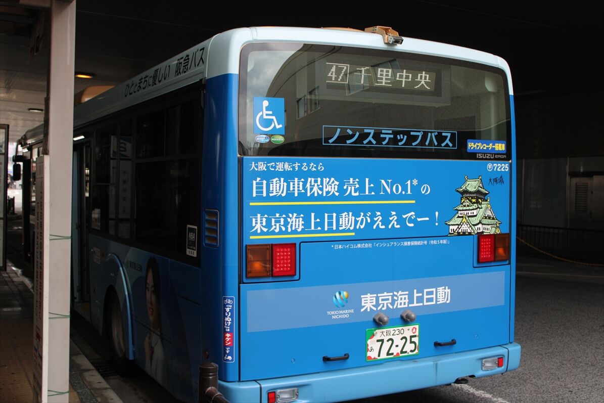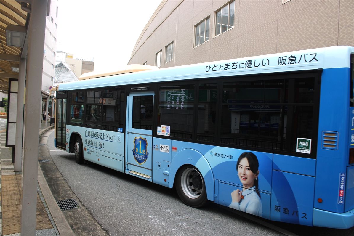 2025年06月19日 東京海上日動(阪急バス)再 カテゴリ:阪急バス(千里営業所) by wrpgu 春に一度載せた、千里営業所のラッピングバス デザインの異なる左側を撮れていなかったですが、先日再撮影 北川景子さんがデザイン 千里では、GOアプリで竹野内豊さんのやつもいるので、なかなか豪華 (2025/6)