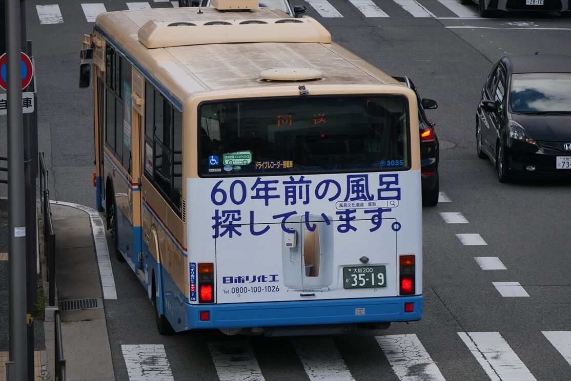 2025年10月29日 ◆日ポリ加工(阪急バス) カテゴリ:阪急バス(千里営業所) by wrpgu 千里の車両に、風呂メーカーのリアラッピングがつきました 60年前の風呂探しています。 風呂文化遺産 買取 というなかなか珍しい広告。 おまけ:千里車、7192にアーバンプランニングのリアラッピングが 阪北線用の7092、明康のリアラッピング終了(左の薬局も終わってます) (2025/10)
