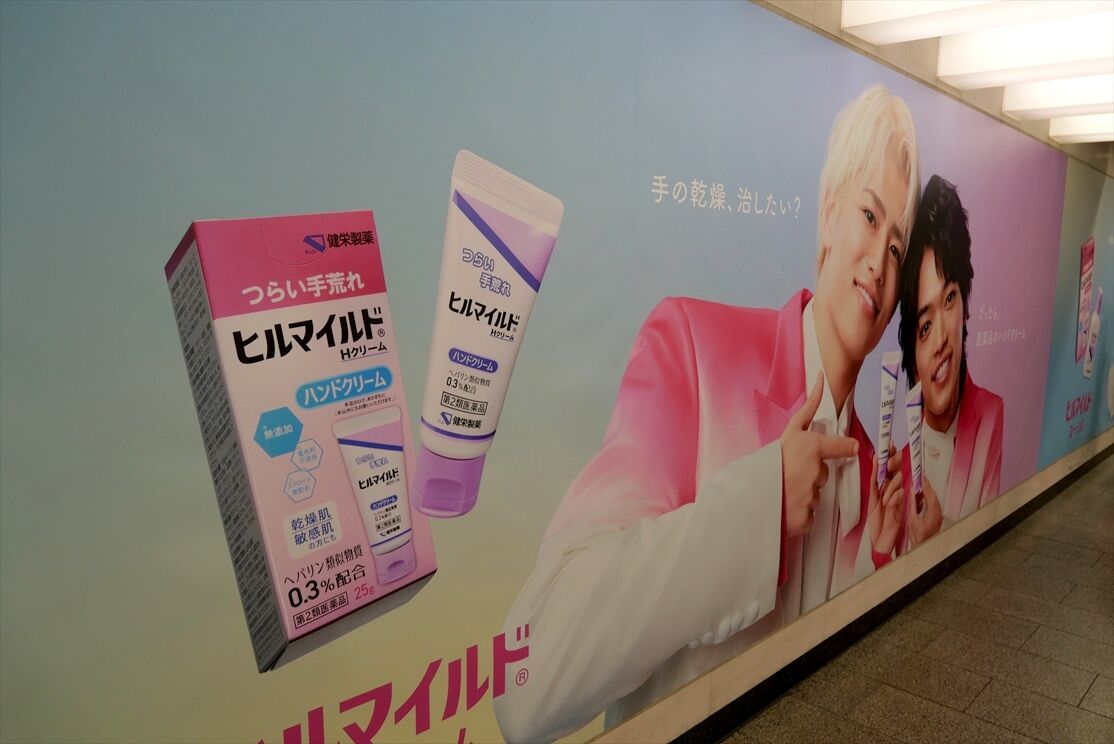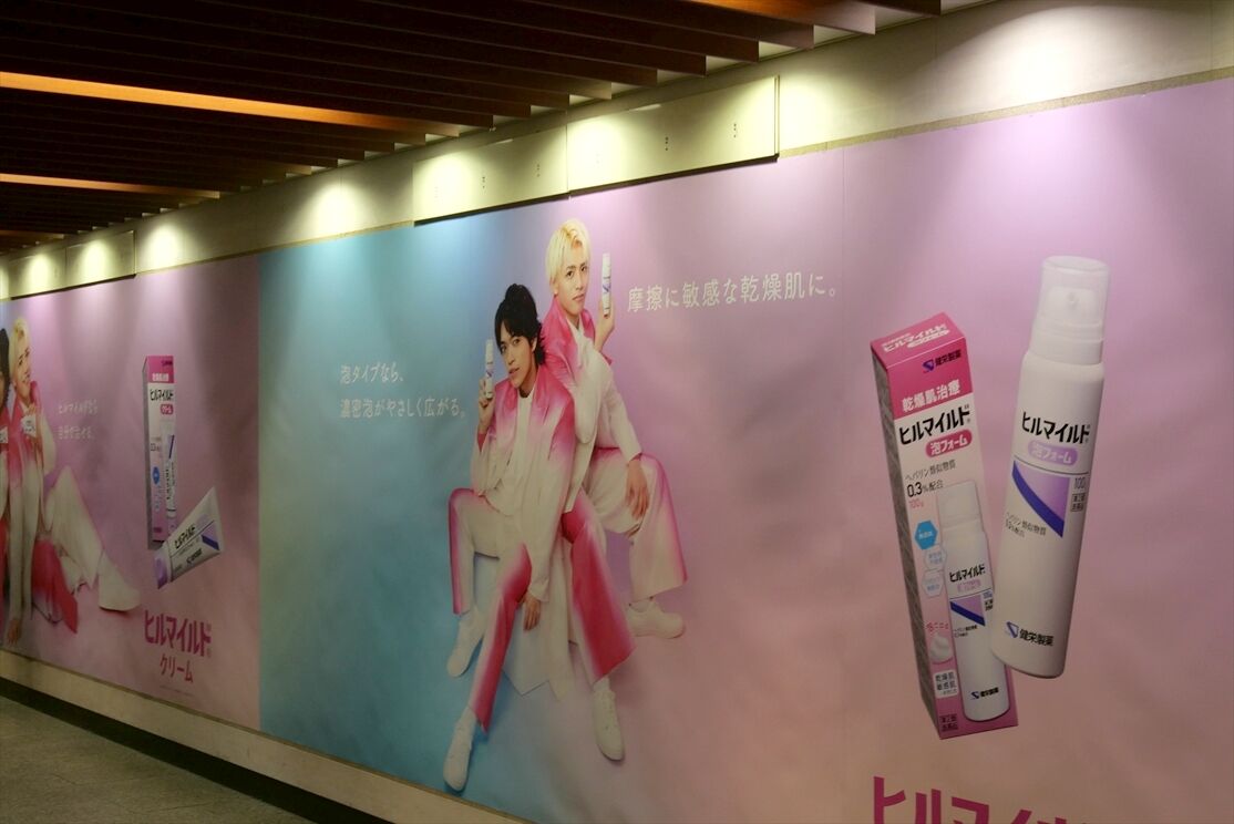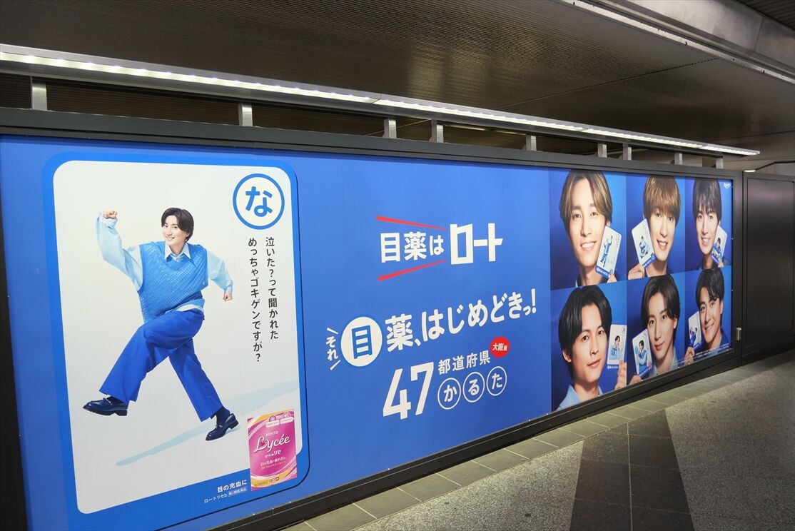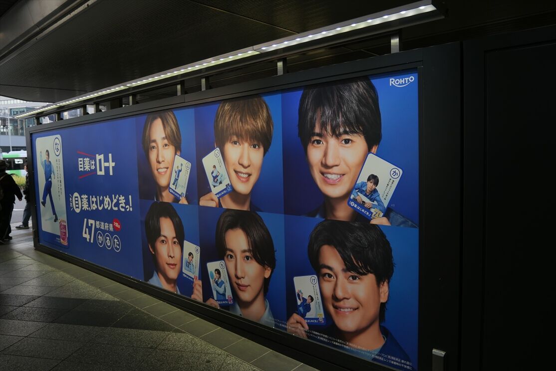 ・大阪駅前バスターミナルそばに、ロート製薬。全国で1か所ずつ、SixTONESのオリジナルのポスターが掲出されているそうです