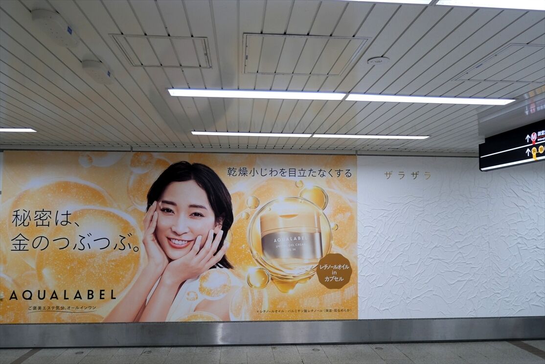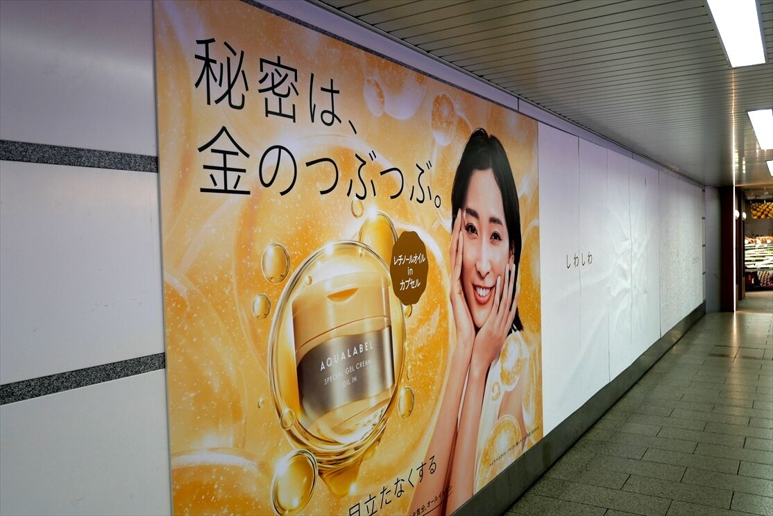 あと、先週御堂筋線なんば通路には、アクアレーベルの面白いパネル広告が