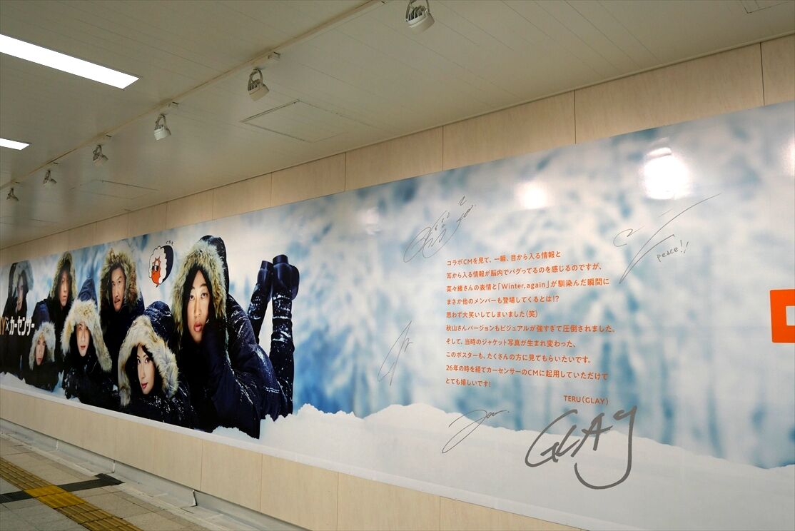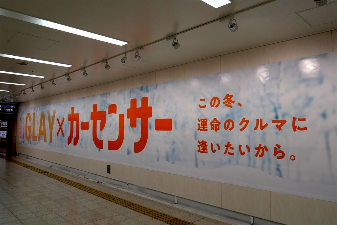 大阪駅桜橋側の地下通路で、カーセンサー・GLAYのコラボ広告が音声付で1/5~掲出