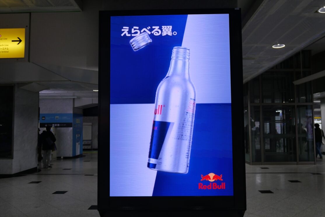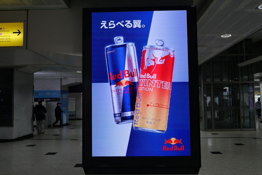 お正月の時に見かけた、大阪駅内の柱ビジョン、レッドブル