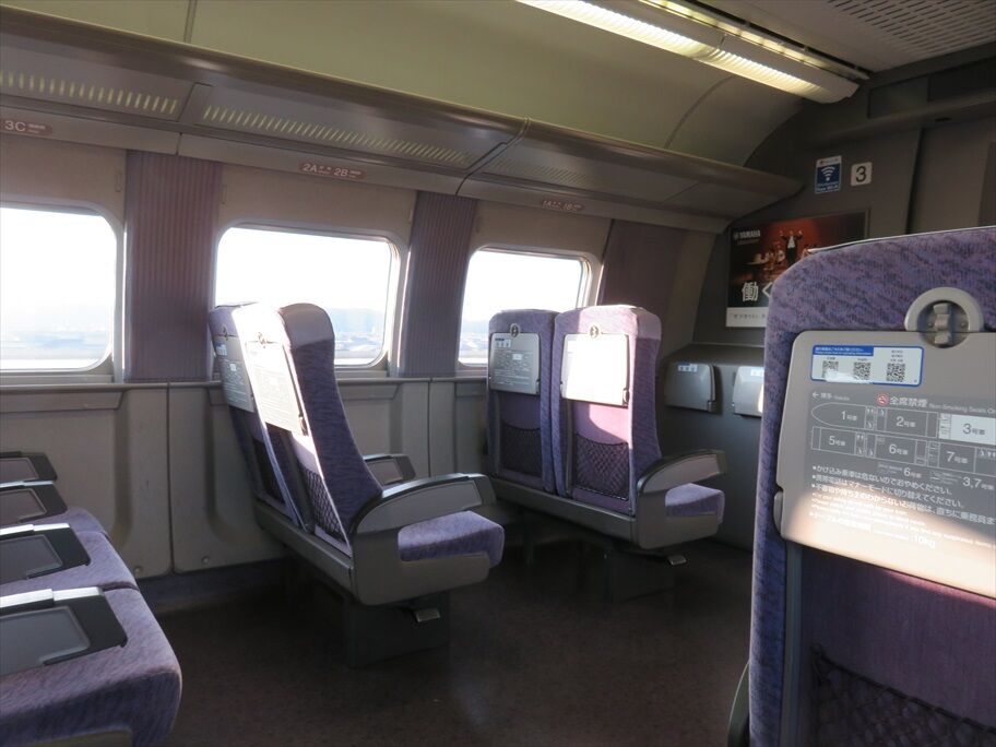レールスター車両(こだま854)に乗車。車両に数人と、春休みシーズンだけどがらがら・・・