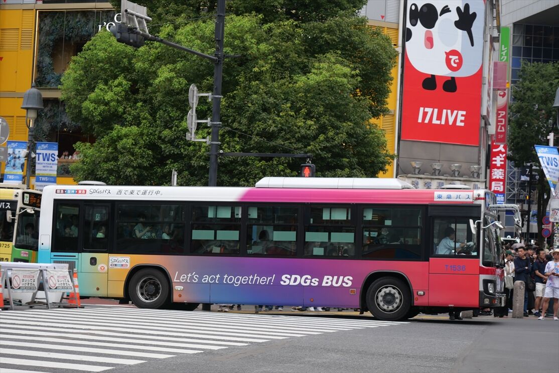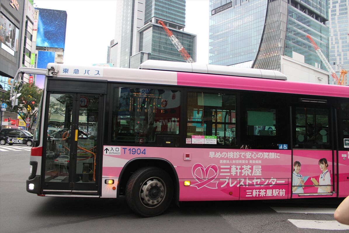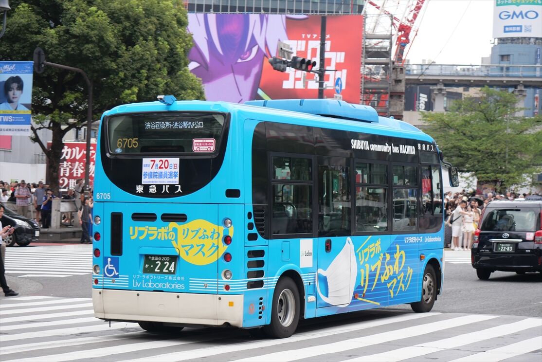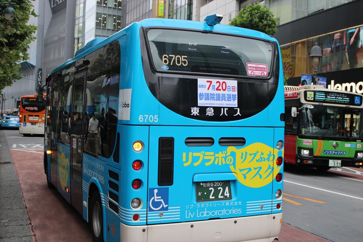 渋谷に居たら、二階建てバスのラッピングバスを見かけました