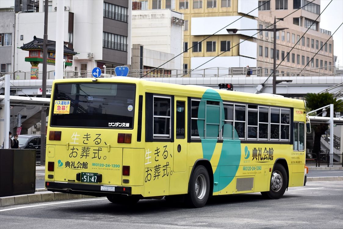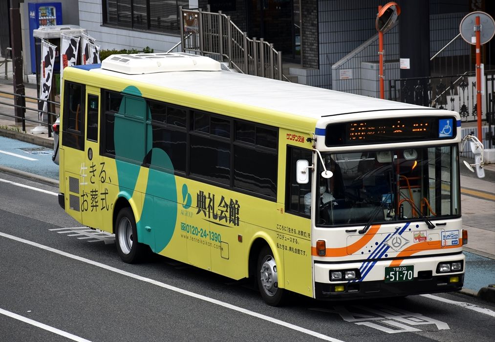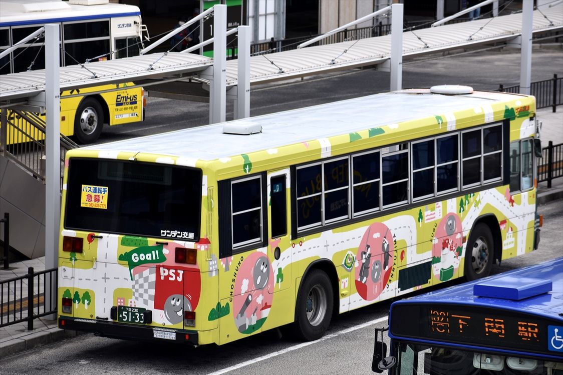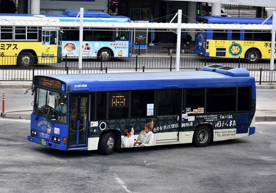 2022年01月16日 サンデン交通ラッピングバス色々 カテゴリ:山口県 ラッピング車 by wrpgu 下関で見かけた、ラッピングバス モノバンク 山口朝日放送 KRY山口放送 大正白蟻工務店 典礼会館 飛鳥会館 ヤクルト(かなり傷んできている) 初めて撮る車両も多かったですが、ラッピング自体は数年前から継続してて、車両が変わったパターンが多かったです。今回出逢った新種はとても少なめ。数年前は、サンデンは圧倒的にラッピングバスが多かったですが、近年は数は減っている感じです。