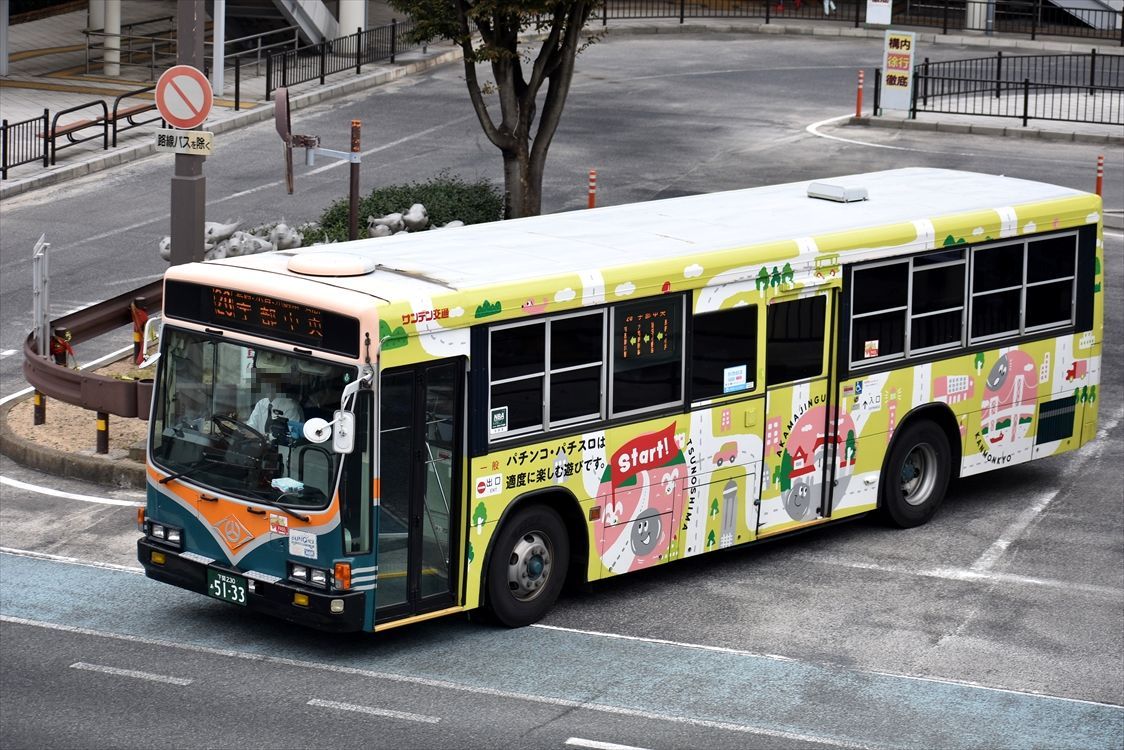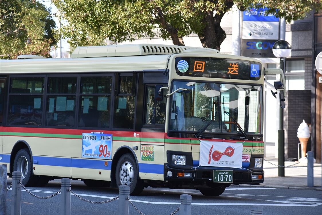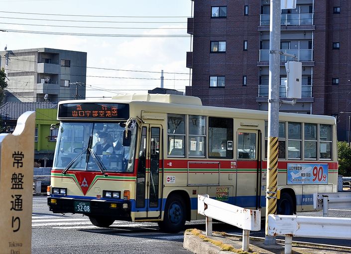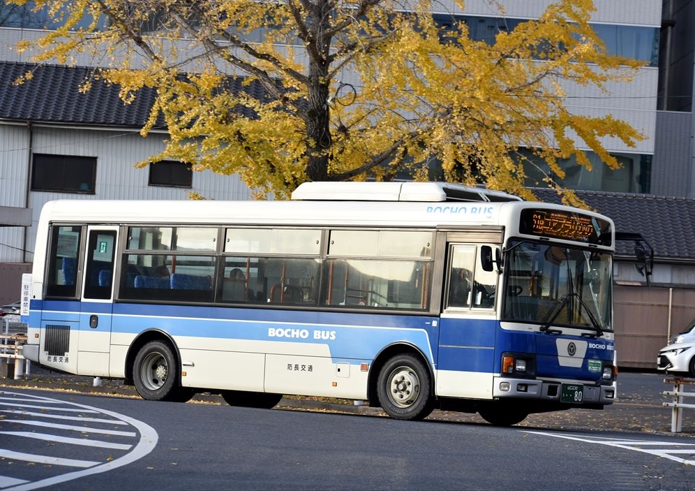 2022年03月15日 防長バスいろいろ カテゴリ:山口県 ラッピング車 by wrpgu 徳山(駅前がかなり整備されて風景が生まれ変わりました)で見かけた、防長バス 80周年記念カラー 一瞬、宮崎交通?!かと思いましたが、80周年の時に復刻カラーとして導入されたようです。ナンバーも80 これも80周年カラーのようです 広告車 1時間くらい滞在しましたが、全然ラッピング車は見かけませんでしたが、唯一来たのはこの右面ラッピングバス 近鉄バス。今はこのカラーが主役・・・ (最後だけ博多にて) まるで数年前の大阪にいるような錯覚に