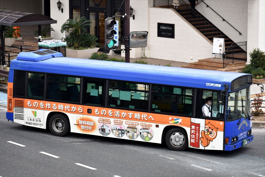 2022年01月08日 東武住販(サンデン交通) カテゴリ:山口県 ラッピング車 by wrpgu 以前にも見たことのある、サンデンの東武住販のラッピングバス、このデザインに変更されてから初遭遇 おまけ:その他、不動産系のラッピングバス 長いこと、下関でラッピングを出している、不動産のエミアス(側面のみ) こちらも長い緑都開発。この車種でのラッピングは初遭遇 創和技研