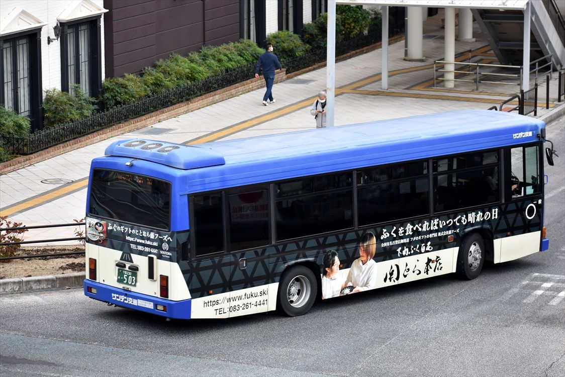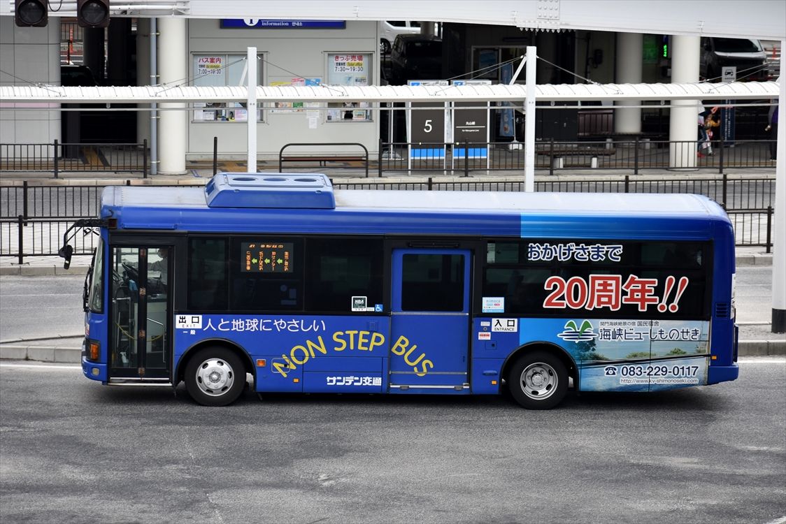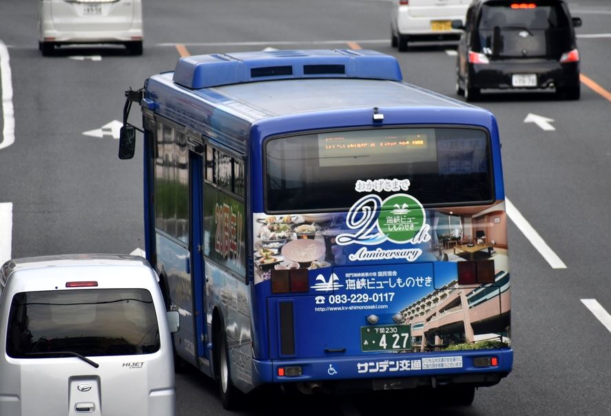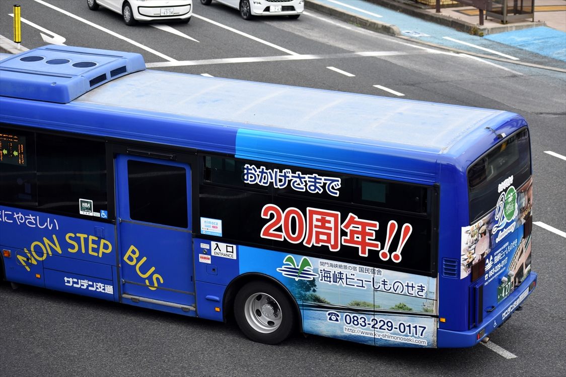 2022年01月13日 ▽◆海峡ビューしものせき(サンデン交通) カテゴリ:山口県 ラッピング車 by wrpgu 下関で見かけた、海峡ビュー20周年の部分ラッピングバス 左側後方と、後部にラッピングされていました