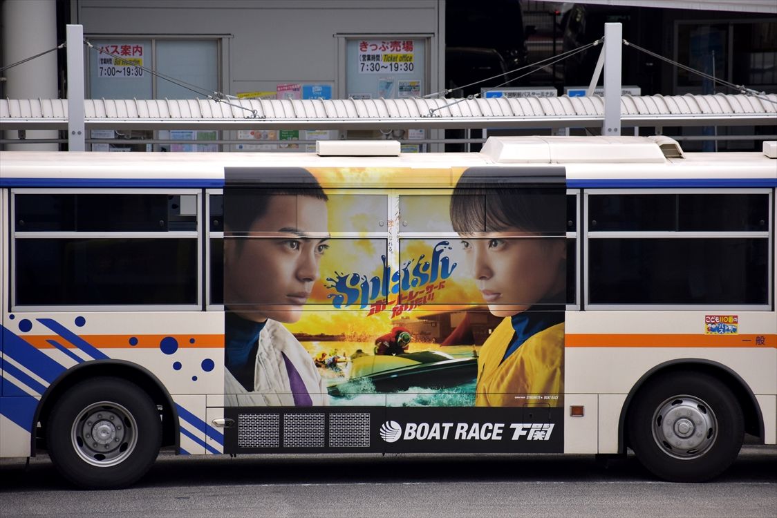 2022年01月08日 △ボートレース下関(サンデン交通) カテゴリ:山口県 ラッピング車 by wrpgu 下関で、ボートレースの部分ラッピングバスを2種類見かけました いずれも、右面の中央部分のみで、窓にもラッピング CMキャラクターの神尾楓珠さんと芋生悠さんがデザイン(2021年版)
