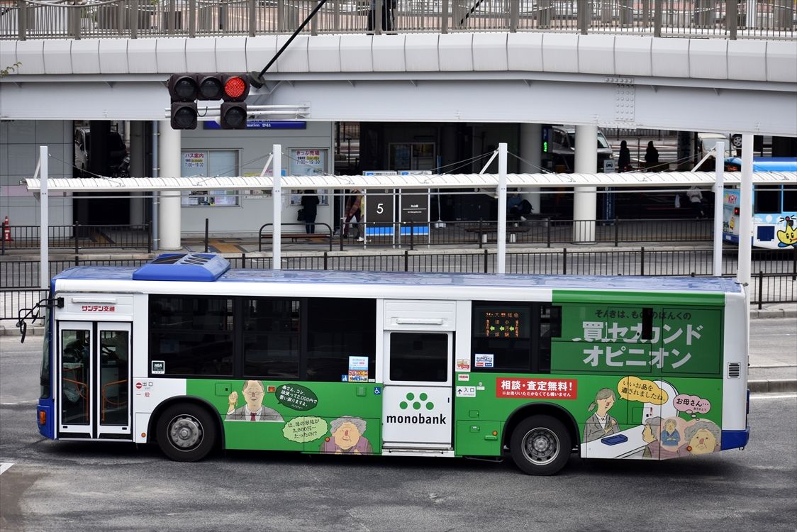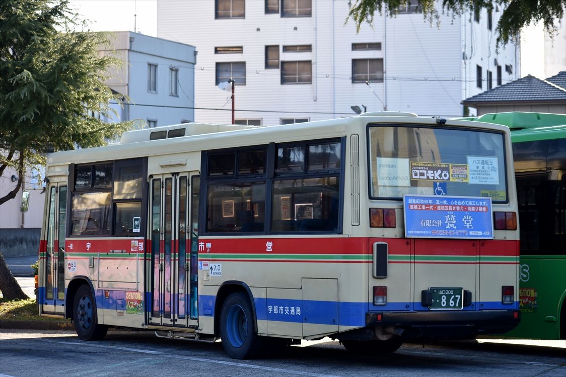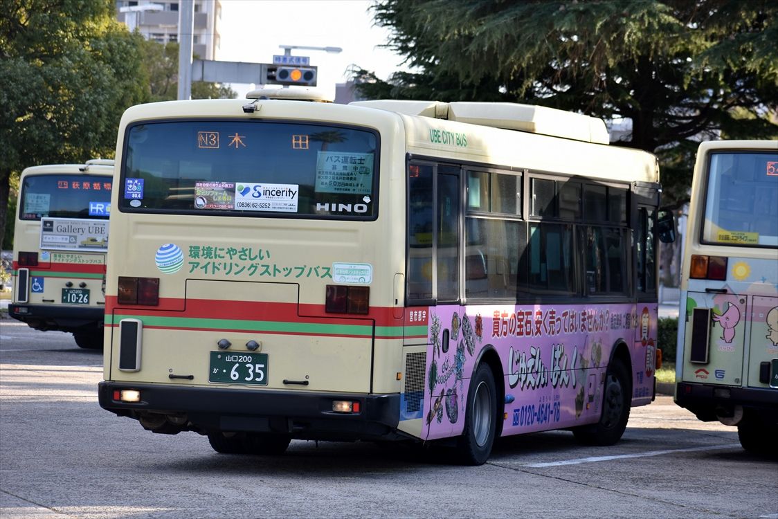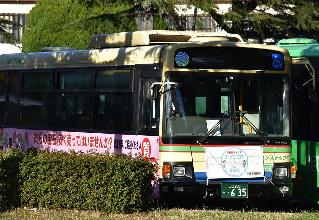 2022年03月04日 じゅえりぃばんく(宇部市バス) カテゴリ:山口県 ラッピング車 by wrpgu 宇部市の、宝飾買取店のラッピングバス(側面のみ) 前面には、ストップコロナの”マスク” おまけ:その他宇部市バス色々 新旧色々いてました そういえば、SOLATOのラッピングバスも見かけたのですが、撮影できず・・・ 駅に戻って来るかな?と期待してましたが、現れず・・・ 恐らく車庫行きだったかと・・・